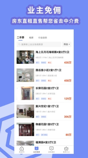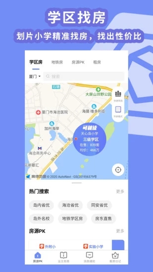便捷易用的个性化找房体验,定位查找附近优质房源、二手房/租房/小区等多种选房维度随心切换、房源搜索结果匹配购房需求智能排序展示。